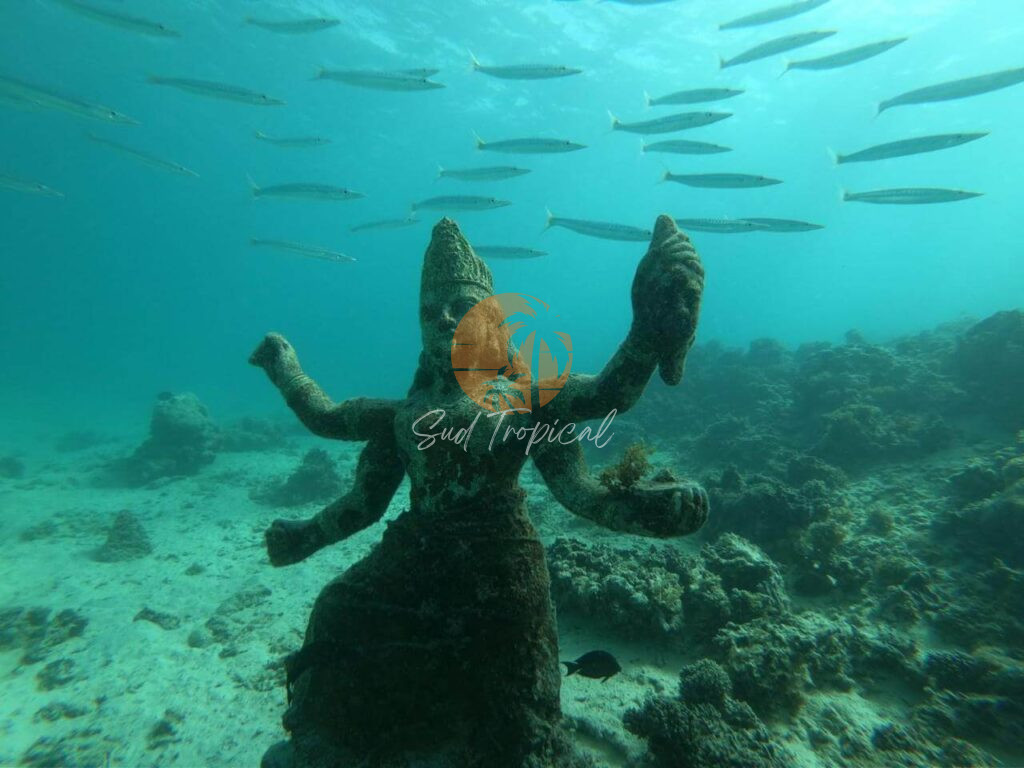Accompagnés de notre skipper et de votre guide, vous découvrirez des fonds marins riches et variés : épave, coraux, vestiges hindous et une grande diversité de poissons tropicaux 🐠.